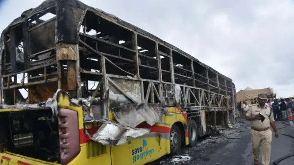ஆந்திராவில் தீப்பிடித்து எரிந்த பேருந்து; 25க்கும் மேற்பட்டோர் உடல் கருகி உயிரிழப்பு