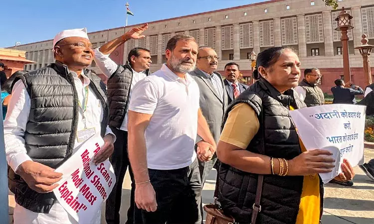 இந்திய நாடாளுமன்ற வளாகத்தில் காங்கிரஸ் எம்.பிகள் போராட்டம்