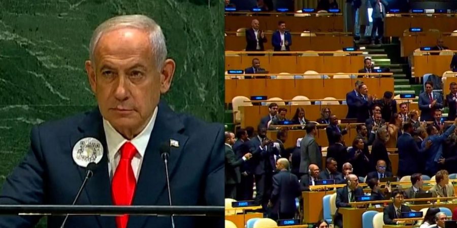 ஐ.நா பொதுச் சபையில் இஸ்ரேல் பிரதமர் நெதன்யாகு உரையாற்ற வந்ததும் அங்கிருந்து பல்வேறு நாட்டு தலைவர்கள் மற்றும் அதிகாரிகள் உள்ளிட்ட பிரதிநிதிகள் பலரும் அவையை விட்டு வெளியேறினர்.