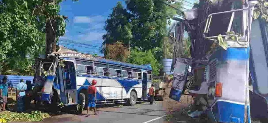 இன்று காலை (30) மட்டக்களப்பு காத்தான்குடி பொலிஸ் பிரிவுக்குட்பட்ட கிரான்குளம் பகுதியில் பேருந்து ஒன்று வீதியை விட்டு விலகி மரமொன்றுடன் மோதி இவ்வாறு விபத்துக்குள்ளாகியுள்ளது.