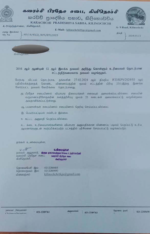 கரைச்சி பிரதேச சபையிடம் ஊடகவியலாளர் ஒருவர் தகவல் அறியும் உரிமைச் சட்டத்தினூடாக கோரப்பட்ட தகவல்களுக்கு கிடைக்கப்பெற்ற பதில்களிலேயே இந்த சட்ட விரோத வியாபார நிலையங்கள் வெளிச்சத்துக்கு வந்துள்ளன.