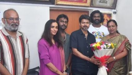கோட் படக் குழுவினருடன் பிரேமலதா விஜயகாந்தை சந்தித்த விஜய்