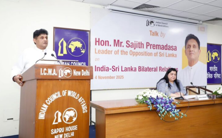 இந்தியாவிற்கு உத்தியோகபூர்வ விஜயம் மேற்கொண்டுள்ள எதிர்க்கட்சித் தலைவர் சஜித் பிரேமதாச , புது டில்லியில் உலக விவகாரங்களுக்கான இந்திய கவுன்சிலில் (Indian Council of World Affairs-ICWA) சிறப்புரை நிகழ்த்தினார்.
