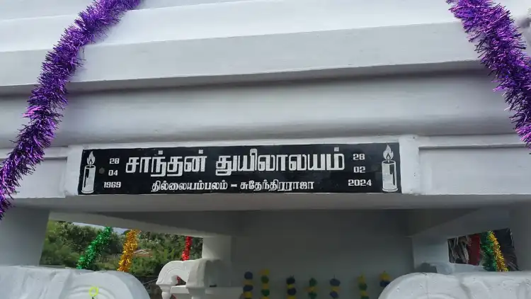 இந்திய முன்னாள் பிரதமர் ராஜீவ் காந்தி கொலை வழக்கில் சிறைத்தண்டனை அனுபவித்த சாந்தன் உயிரிழந்து இன்றுடன் ஓராண்டு கடந்தள்ள நிலையில், அவரது உடல் அடக்கம் செய்யப்பட்ட மயானத்தில் அன்னாரின் துயிலுமில்லம் அவரது தயாரினால் இன்று திறந்து வைக்கப்பட்டது.