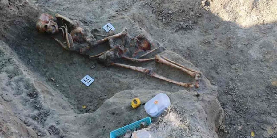 அத்துடன் ஒன்றுடன் ஒன்று அருகருகே புதைக்கப்பட்ட கால்கள் மடிந்த நிலையிலும், எலும்பு கூட்டு தொகுதிகள் அடையாளம் காணப்பட்டுள்ளதுடன், அவை அசாதாரணமாகவே புதைக்கப்பட்டுள்ளன என்பது கண்களுக்கு புலனாகின்ற போதிலும், மீட்கப்படும் எலும்பு கூட்டு தொகுதிகளை சட்ட வைத்திய அதிகாரி ஆய்வுகளுக்கு உட்படுத்தி சட்ட வைத்திய அதிகாரியின் அறிக்கையின் பிரகாரமே மேலதிக தகவல்களை கூற முடியும் என தெரிவிக்கப்பட்டுள்ளது.