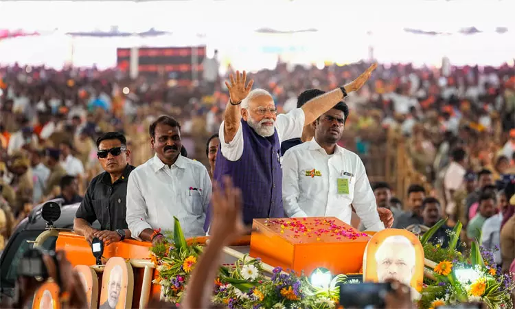 நாடாளுமன்ற தேர்தல் களம் தற்போது சூடுபிடிக்க தொடங்கி உள்ளது. அரசியல் கட்சி தலைவர்கள் தேர்தல் பிரசாரங்களை தொடங்கி விட்டனர். நாடாளுமன்ற தேர்தலையொட்டி நாடு முழுவதும் பிரதமர் மோடி சூறாவளி சுற்றுப்பயணம் செய்து தேர்தல் பிரசாரம் செய்து வருகிறார். அந்த வகையில், பிரதமர் மோடி நேற்று கோவை வந்தார். கோவையில் வாகன பேரணியில் பங்கேற்றார்.