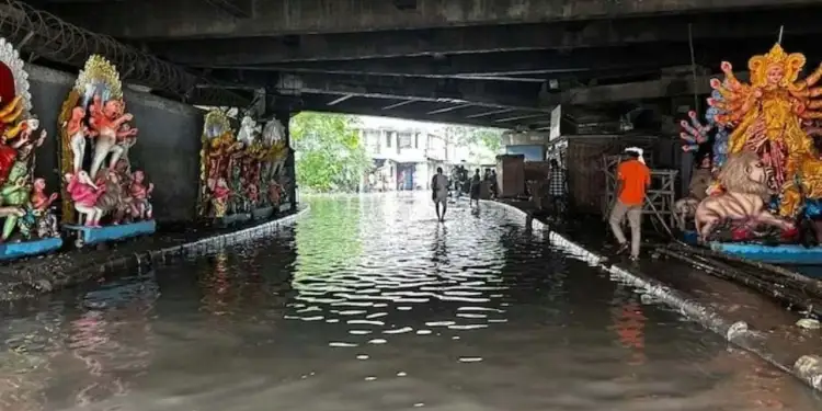 துர்கா பூஜைக்கான ஏற்பாடுகள் முழு வீச்சில் நடைபெற்று வரும் நிலையில், நகரத்தை இடைவிடாத மழை தாக்கியுள்ளது.