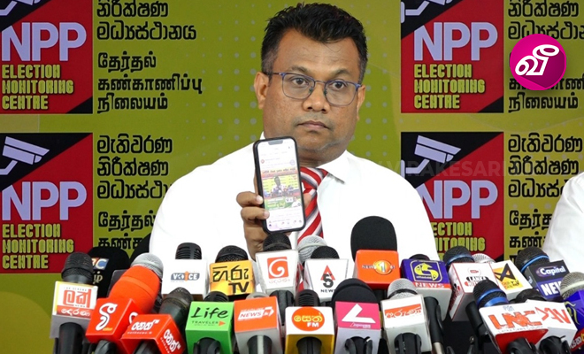 தேசிய மக்கள் சக்தியின் தேர்தல் கண்காணிப்பு நிலையத்திற்கு கிடைகின்ற முறைப்பாடுகளை பிரதேச மற்றும் வட்டாரசபை மட்டத்தில் கண்காணிப்பதற்கான கண்காணிப்பாளர்களை நியமித்திருக்கிறோம். தொடக்கத்திலிருந்து இற்றைவரையான காலப்பகுதியை ஒட்டுமொத்தமாக நோக்கினால் தேர்தல் சட்டமீறல்களில் துரித அதிகரிப்பு காணப்படுகின்றது என சட்டத்தரணி அகலங்க உக்வத்த தெரிவித்தார்.இது தொடர்பில் அவர் மேலும் தெரிவிக்கையில்,தேசிய மக்கள் சக்தியின் தேர்தல் கண்காணிப்பு நிலையத்திற்கு கிடைகின்ற முறைப்பாடுகளை பிரதேச மற்றும் வட்டாரசபை மட்டத்தில் கண்காணிப்பதற்கான கண்காணிப்பாளர்களை நியமித்திருக்கிறோம். தொடக்கத்திலிருந்து இற்றைவரையான காலப்பகுதியை ஒட்டுமொத்தமாக நோக்கினால் தேர்தல் சட்டமீறல்களில் துரித அதிகரிப்பு காணப்படுகின்றது.தேர்தல் சட்டங்களை மீறுதல் பற்றிய 392  முறைப்பாடுகள் பதிவாகியுள்ளதோடு, சட்டவிரோதமான பிரச்சாரம் 186,  சட்டரீதியான தேர்தலுக்கு தடையேற்படுத்துதல் 06, வன்செயல்கள் 30, மக்கள் அபிப்பிராயத்திற்கு முறையற்ற அழுத்தம் பிரயோகித்தல் 120, அரச வளங்களின் முறையற்ற பாவனை 73 மற்றும் அரச உத்தியோகத்தர்களை பாவித்தல் 39  என்றவகையில் பதிவாகியுள்ளது.சமூக ஊடகங்களை பாவித்து  தேசிய மக்கள் சக்தியின் வேட்பாளர் அநுர குமார திசாநாயக்கவை மையப்படுத்தி பாரிய சேறுபூசுதல் மேற்கொள்ளப்பட்டு வருகின்றது.தேசிய மக்கள் சக்தியின் கொள்கைப் பிரகடமென உணர்த்தக்கூடியவகையில்  தயாரித்த போலியான தகவல்களையும் தேசிய மக்கள் சக்தியின் தலைவர்கள் தெரிவித்த கருத்துக்களை திரிபுபடுத்தியும் தொகுத்தமைத்து தயாரித்த காணொளிகளைப்போன்றே தேசிய மக்கள் சக்தியின் வேட்பாளர் அநுர குமார திசாநாயக்கவின் பெயரில் தயாரித்த போலியான மருத்துவ அறிக்கை போன்றவற்றை பிரசுரித்துள்ளார்கள்.அந்த மருத்துவ அறிக்கை உண்மையானதென காட்டுவதற்காக தேசிய மக்கள் சக்தியின் கடிதத்தலைப்பின்கீழ் தேசிய மக்கள் சக்தியின் சட்டத்தரணி  சுனில் வட்டகலவின் போலியான கையொப்பத்துடன் தயாரித்த போலியாவணத்தையும் சமூகமயப்படுத்தி உள்ளார்கள். அது சம்பந்தமாக புலன்விசாரணைகளை மேற்கொள்ளுமாறு குற்றப்புலனாய்வுத் திணைக்களத்தின் சமூக ஊடக முறைப்பாடுகள் பிரிவிற்கு விடயங்களை முன்வைத்தோம்.தேர்தல்கள் சட்டம் மாத்திரமன்றி அதற்கு அப்பால்சென்ற தண்டனைச் சட்டக்கோவையில் காட்டப்பட்டுள்ள போலியாவணம் புனைதல் எனும் குற்றச்செயலையும் புரிந்துள்ளார்கள்.  போலியான மருத்துவக் குறிப்பினை பிரசுரித்த பின்னர் ஆசிரி வைத்தியசாலையின் உத்தியோகபூர்வ “பேஸ் புக்” தளத்திலிருந்து மும்மொழியிலும் அறிவித்தல்களை விடுத்து சம்பந்