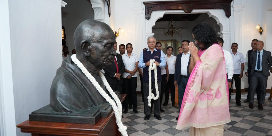 இதன்போது பிரதமர் ஹரினி அமரசூரியவும் இலங்கைக்கான இந்திய உயர்ஸ்தானிகர் சந்தோஷ் ஜாவும் மகாத்மா காந்தியின் திருவுருவச்சிலைக்கு மலர்மாலை அணிவித்து மரியாதை செலுத்தினர்.