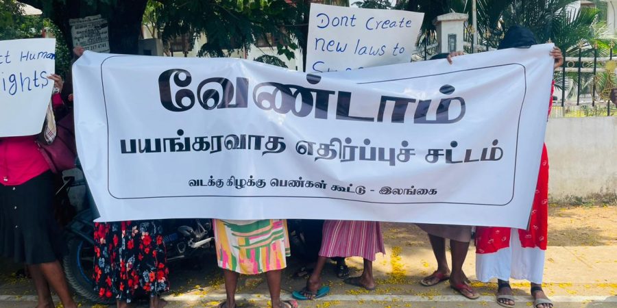 வடக்கு கிழக்கு பெண்கள் கூட்டமைப்பின் ஏற்பாட்டில் புதிய பயங்கரவாத எதிர்ப்பு சட்ட மூலத்திற்கு எதிரான கவனயீர்பு போராட்டம் யாழ்ப்பாண மாவட்ட செயலகத்திற்கு முன்பாக இன்றைய தினம்(வியாழக்கிழமை) முன்னெடுக்கப்பட்டது.