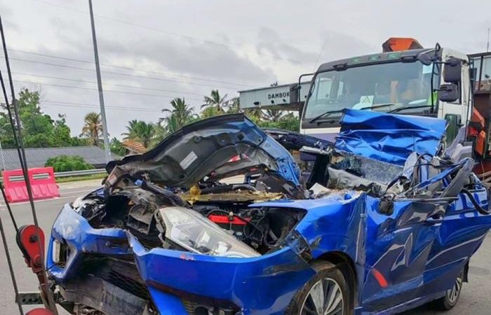 அதிவேக வீதியில் பயணித்த கார், முன்னால் பயணித்த லொறியின் பின்புறத்தில் மோதியதில் விபத்து