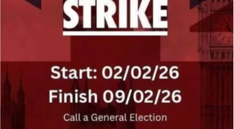 முழு பிரித்தானியாவும் ஒரு வாரம் வேலைநிறுத்தத்தில் ஈடுபடவேண்டும் என புலம்பெயர்தல் எதிர்ப்பு அமைப்பு ஒன்று அழைப்பு விடுத்துள்ளது.பிரித்தானியாவை மையமாகக் கொண்டு செயல்படும் The Great British National Strike என்னும் அமைப்பின் தலைவரான ரிச்சர்ட் டொலால்ட்சன் (Richard Donaldson) என்னும் நபர், பிரித்தானியர்கள் அனைவரும் ஒரு வாரம் வேலைநிறுத்தத்தில் ஈடுபடவேண்டும் என அழைப்பு விடுத்துள்ளார்.