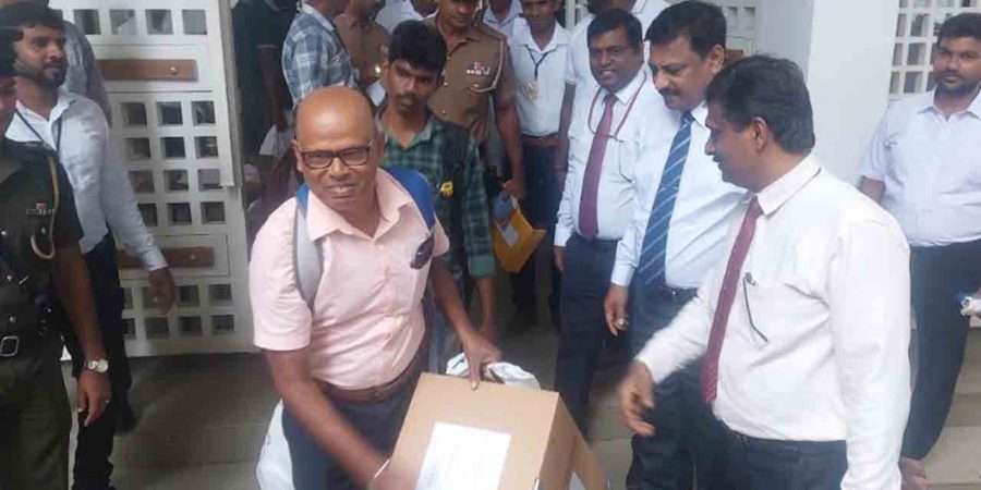 வாக்களிப்பு நிலையங்களுக்கான வாக்குபெட்டிகள் அரச ஊழியர்களின் பங்களிப்பில் பொலிஸ் பாதுகாப்புடன் எடுத்து செல்லப்படுகின்றன.