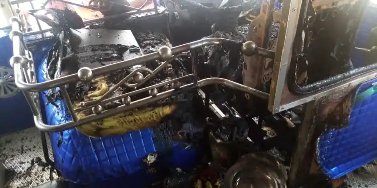 யாழில் நிறுத்தி வைக்கப் பட்டிருந்த தனியார் பேருந்தில் தீ விபத்து