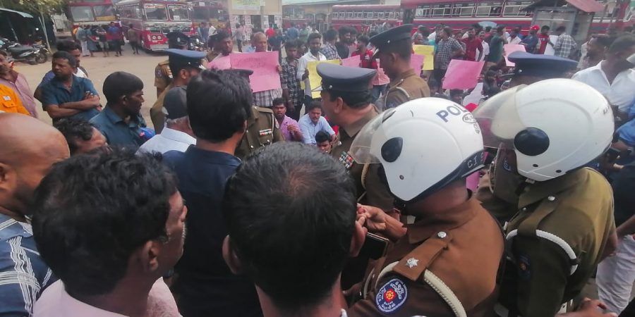 யாழ். மத்திய பேருந்து நிலையத்தை முற்றுகையிட்டு போராட்டம்