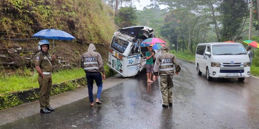 விபத்தின்போது தனியார் பஸ்ஸின் பின்புறம் இரண்டாகப் பிரிந்துள்ளதாக பொலிஸார் தெரிவித்தனர்.