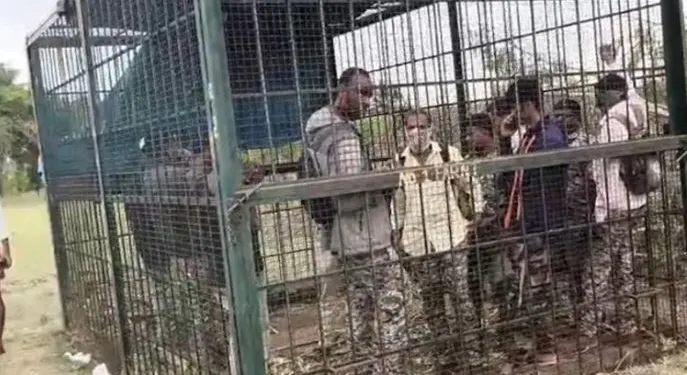 வனத்துறை அதிகாரிகளைப் புலிக் கூண்டில் அடைத்த கிராம மக்கள்
