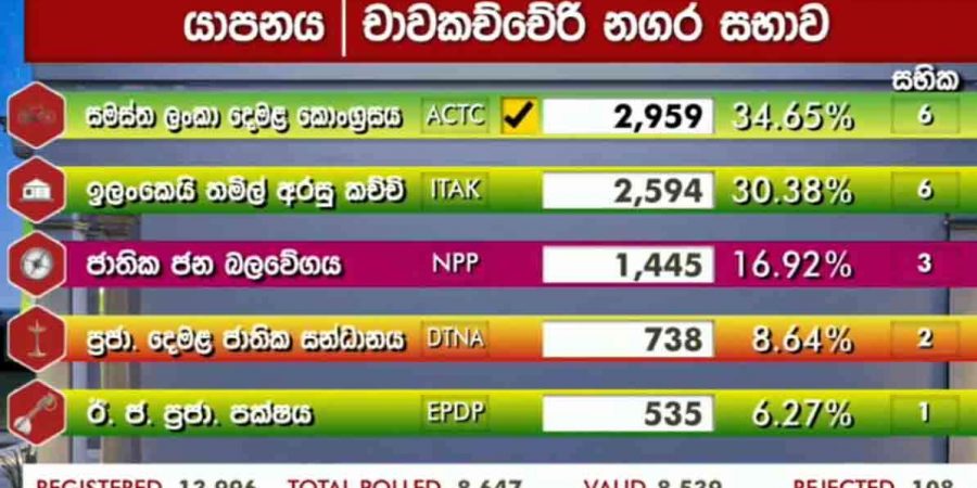 அகில இலங்கை தமிழ் காங்கிரஸ் (ACTC) – 5,047 வாக்குகள் – 5 உறுப்பினர்கள்