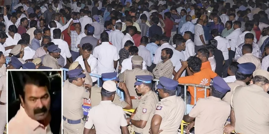 பொலிஸ் விசாரணைக்கு சீமான் ஆஜரான நிலையில், நாம் தமிழர் கட்சியின் நிர்வாகிகள் மற்றும் தொண்டர்கள் அதிகளவில் வளசரவாக்கம் பொலிஸ் நிலையம் அருகே திரண்டனர். அவர்களை கட்டுப்படுத்தும் வகையில் தடுப்புகளை பொலிஸ் அமைத்திருந்தது. பாதுகாப்பு கருதி 300 இற்கும் மேற்பட்ட பொலிஸார் பணியில் ஈடுபடுத்தப்பட்டனர்.
