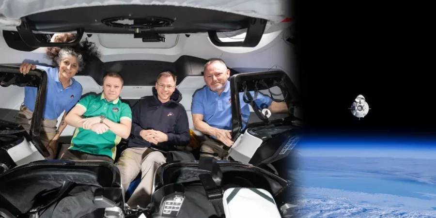 சுனிதா வில்லியம்ஸ் , புட்ச் வில்மோர் மற்றும் அவர்கள் குழுவினர்களான நிக் ஹாக் மற்றும் ரஷ்ய வீரர் அலெக்சாண்டர் கோர்புனோவ் ஆகியோர் க்ரூ டிராகன் விண்கலத்தில் உள்ளனர்.