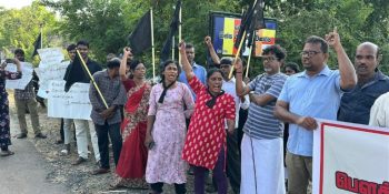 யாழ்ப்பாணம் – தையிட்டியில் அமைக்கப்பட்டுள்ள திஸ்ஸ விகாரையை அகற்றக் கோரி குறித்த விகாரைக்கு முன்பாக போராட்டம் ஒன்று முன்னெடுக்கப்பட்டுள்ளது. தமிழ்த் தேசிய மக்கள் முன்னணியின் ஊடகப் பேச்சாளர் சட்டத்தரணி கனகரட்ணம் சுகாஷ் இந்த போராட்டத்தில் கலந்து கொண்டுள்ளார். போராட்டக்காரர்கள் கறுப்புக் கொடியைமேலும் படிக்க...