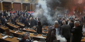 செர்பிய நாடாளுமன்றத்தின் மீது எதிர்க்கட்சியினர் புகை குண்டு தாக்குதல்