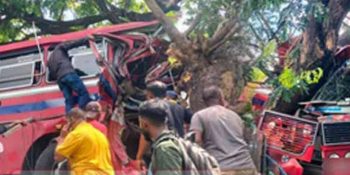 மரத்தில் பேருந்து மோதி கோர விபத்து
