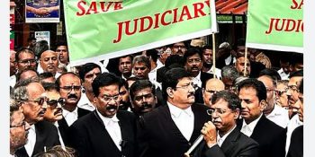 நீதித் துறையை பாதுகாக்க கோரி பாஜக, இந்து முன்னணி வழக்கறிஞர்கள் ஆர்ப்பாட்டம்
