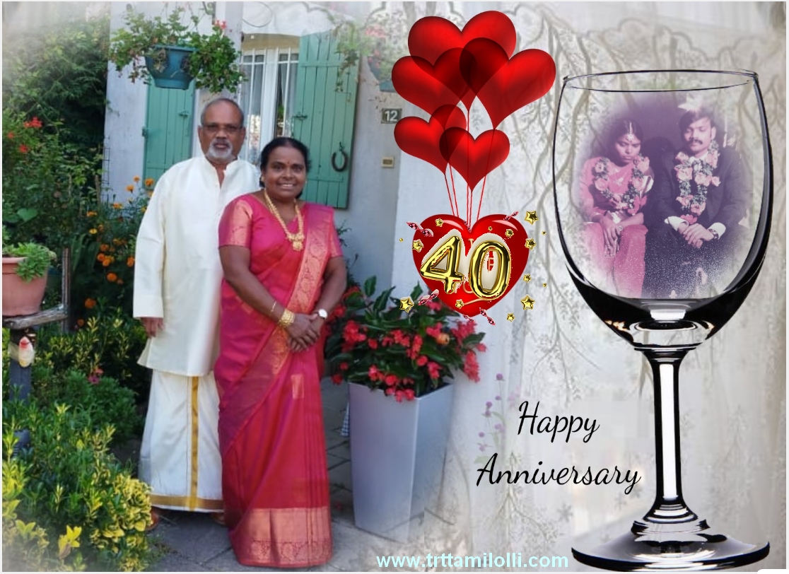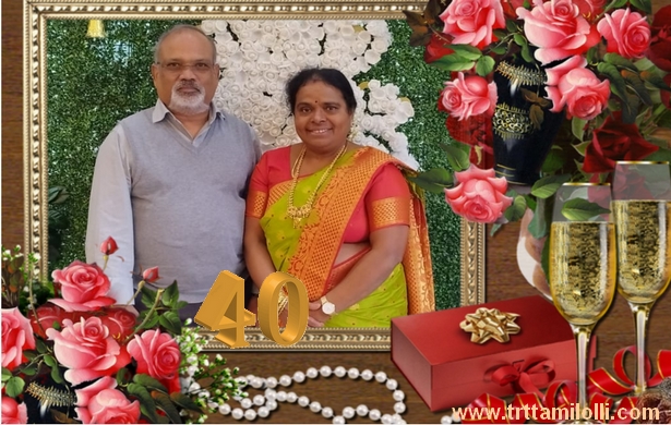 இன்று 40வது ஆண்டு திருமண நாளை கொண்டாடும் தயாளன்&வதனா தம்பதிகளை TRT தமிழ் ஒலி குடும்பமும் இன்று போல் என்றும் பல்லாண்டு காலம் வாழ்க வாழ்கவென வாழ்த்துகின்றோம்.