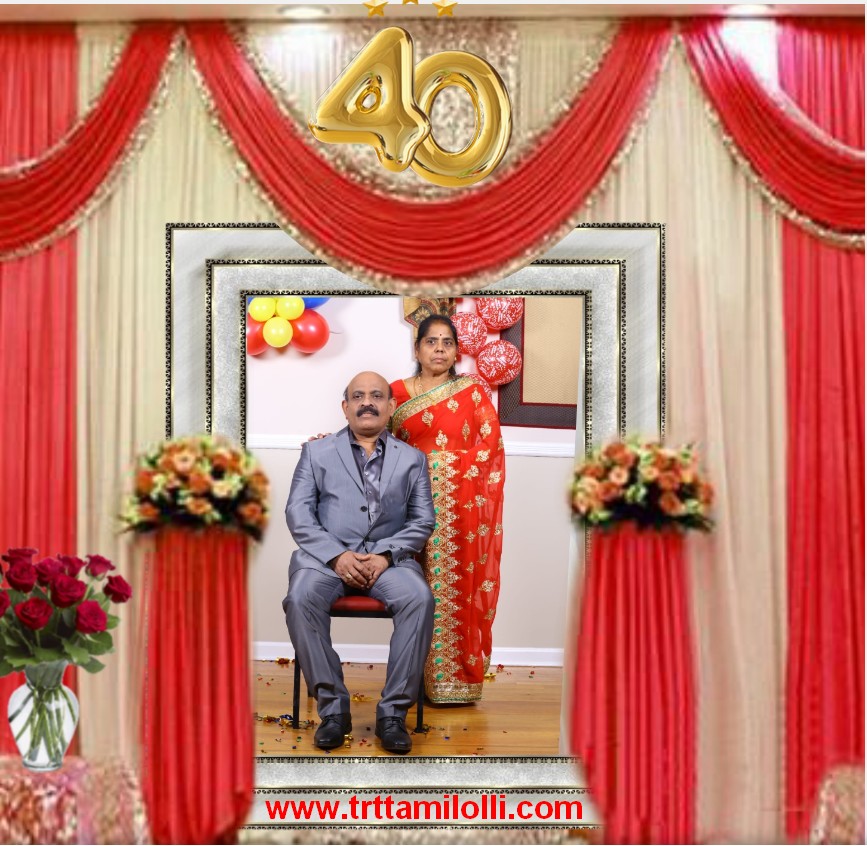இன்று 40வது திருமணநாளை கொண்டாடும் சிவசுந்தரலிங்கம் தனயோகவதி தம்பதிகளை TRT தமிழ் ஒலி குடும்பமும் இணைந்து வாழ்த்தி மகிழ்கின்றோம்.