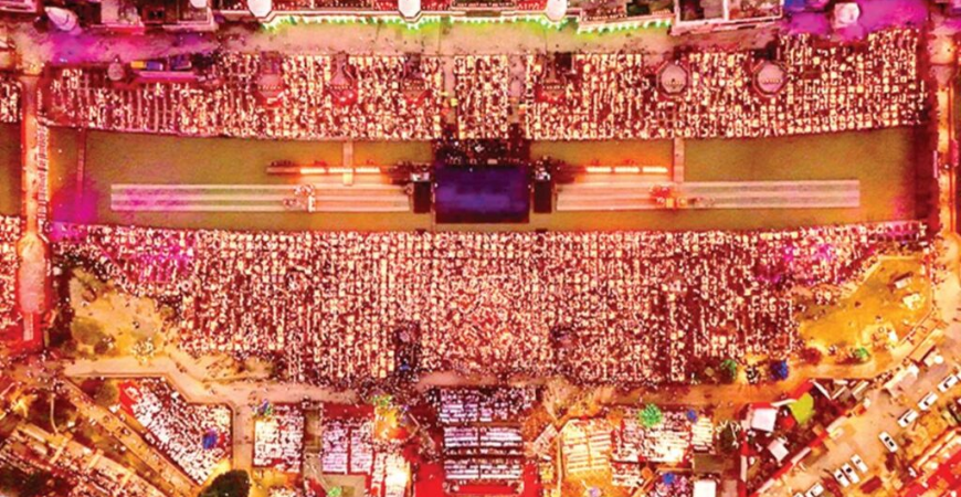 அயோத்தி சரயு நதிக்கரையில் நேற்று 29 லட்சம் அகல் விளக்குகள் ஏற்றப்பட்டு புதிய உலக சாதனை படைக்கப்பட்டது. ஒரே நேரத்தில் 2,128 அர்ச்சகர்கள் நடத்திய பிரம்மாண்ட ஆரத்தி வழிபாடும் உலக சாதனை படைத்துள்ளது.