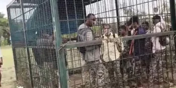 வனத்துறை அதிகாரிகளைப் புலிக் கூண்டில் அடைத்த கிராம மக்கள்